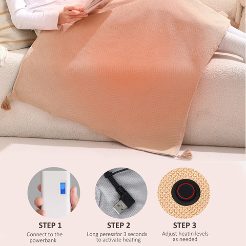 Manta calefactable portátil de temperatura ajustable para mujer, fuente de alimentación de interfaz USB equipada con Banco de energía de 10000mAh