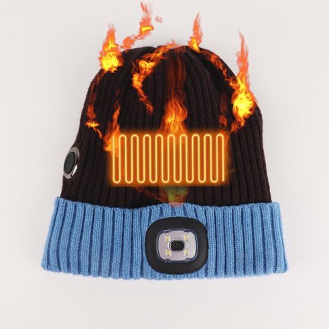 Gorro de invierno calentado con tapa calefactable recargable con luz LED incorporada a través del calentador eléctrico USB adecuado para clima frío al aire libre